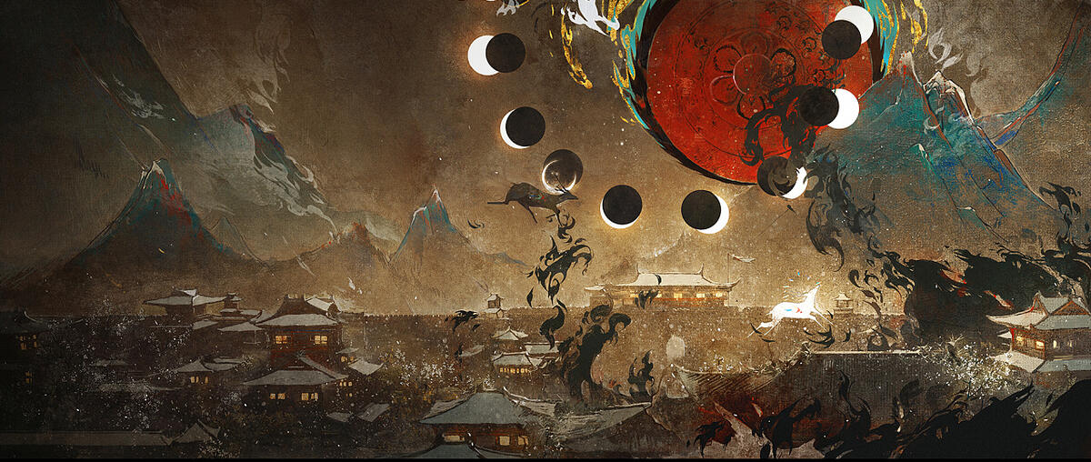 The phoenix led tens of thousands of birds as they flew over from the end of the horizon. Behind them, clouds akin to a sea of fire billowed as they swept by Chang’an. A golden winged roc perched on top of Xingqing Palace, its pupils reflecting the common people of the bustling Divine Land. Within the silence, dynasties rise and fall, while tides ebb and flow.
